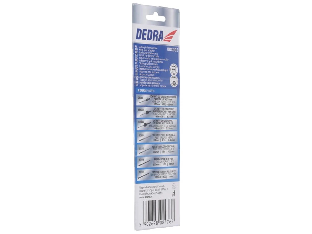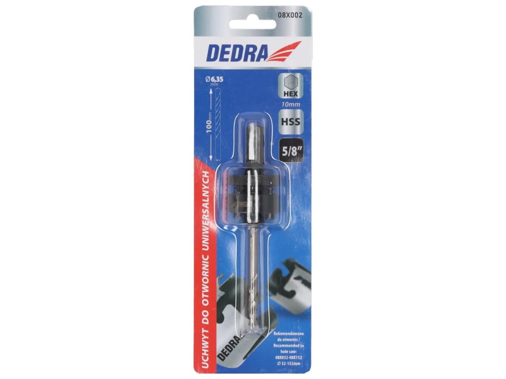 Suportul DEDRA 08X002 este echipat cu un burghiu pilot de 100 mm lungime și 6,35 mm diametru. Trebuie avut în vedere că, așa cum sugerează numele, burghiul îndeplinește doar funcția de pilot și ar trebui să se miște în găura deja forată. Această aplicație garantează un lucru precis și în același timp sigur.