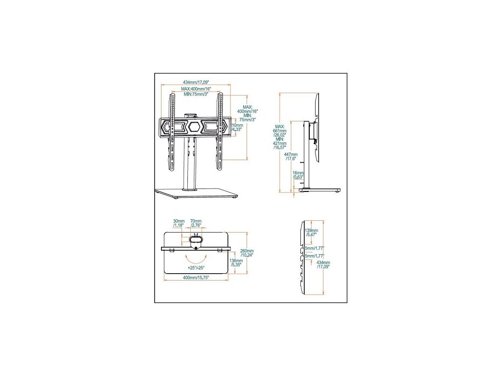 Căutați un suport elegant și funcțional care să asigure stabilitatea și aspectul estetic al televizorului dumneavoastră Suportul - bază universală pentru TV (32"-55") este soluția ideală pentru televizoarele LCD cu diagonala de la 32 la 55 inci, susținând o încărcare maximă de până la 40 kg. Datorită ajustării unghiului de înclinare de ±25°, puteți adapta poziția ecranului conform nevoilor dvs., asigurând un unghi de vizionare optim. Suportul este echipat cu suporturi VESA ajustabile, care se potrivesc pentru dimensiuni de la 75 mm la 400 mm, atât pe înălțime, cât și pe lățime, asigurând versatilitatea montajului. Pachetul include șuruburi de montaj și conducte de cablu, care permit o gestionare elegantă și ordonată a cablurilor. În plus, culoarea elegantă neagră se potrivește perfect în orice design interior.