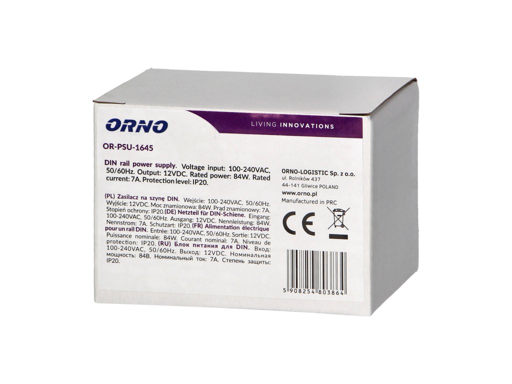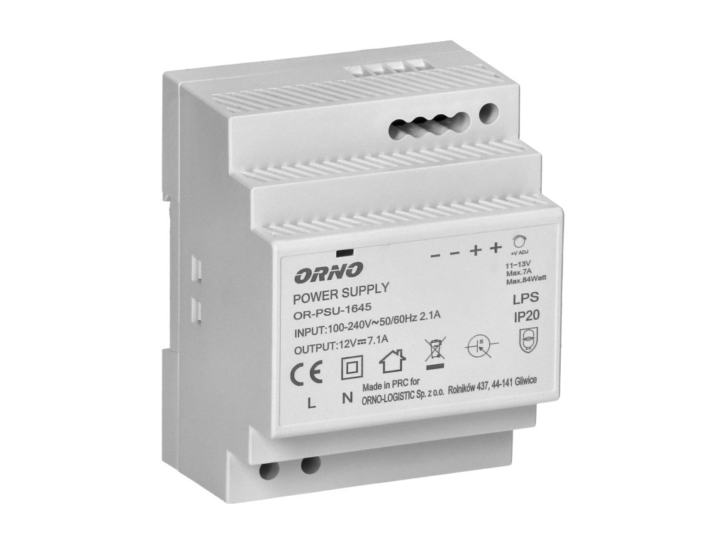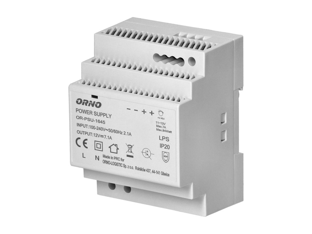 Sursă de alimentare extrem de eficientă și fiabilă pentru șină DIN cu putere maximă de 84W. sarcină și tensiune de ieșire 12V DC, care poate fi reglată. A fost dezvoltată pentru instalare pe șină DIN și poate fi utilizată în multe aplicații, de exemplu aplicații industriale, instalații de joasă tensiune, cum ar fi CCTV sau sisteme de alarmă. Acest adaptor de alimentare include: protecție împotriva supraîncărcării, protecție împotriva supratensiunii și protecție împotriva supracurentului. O diodă integrată indică activarea dispozitivului.