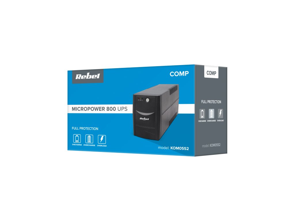 UPS-ul Rebel este echipat cu multiple caracteristici de siguranță pentru a proteja dispozitivele care sunt conectate la el! Rebel Micropower 800 are protecție împotriva: descărcării, supraîncărcării și supraîncărcării.