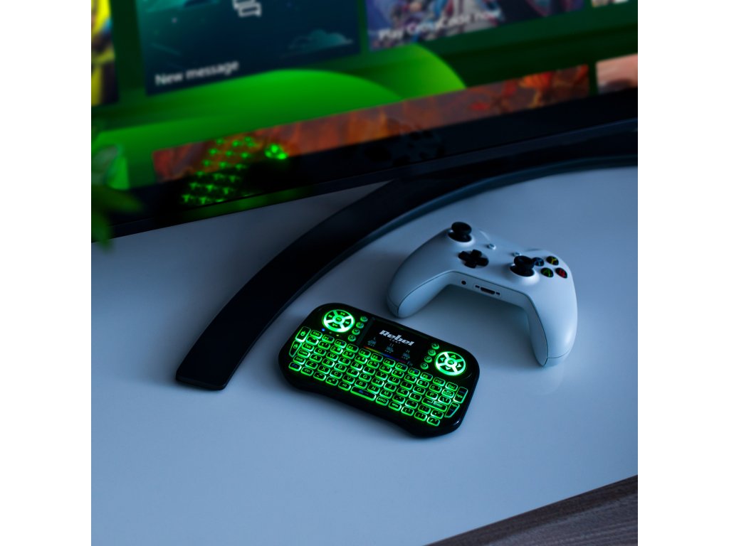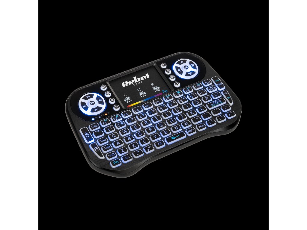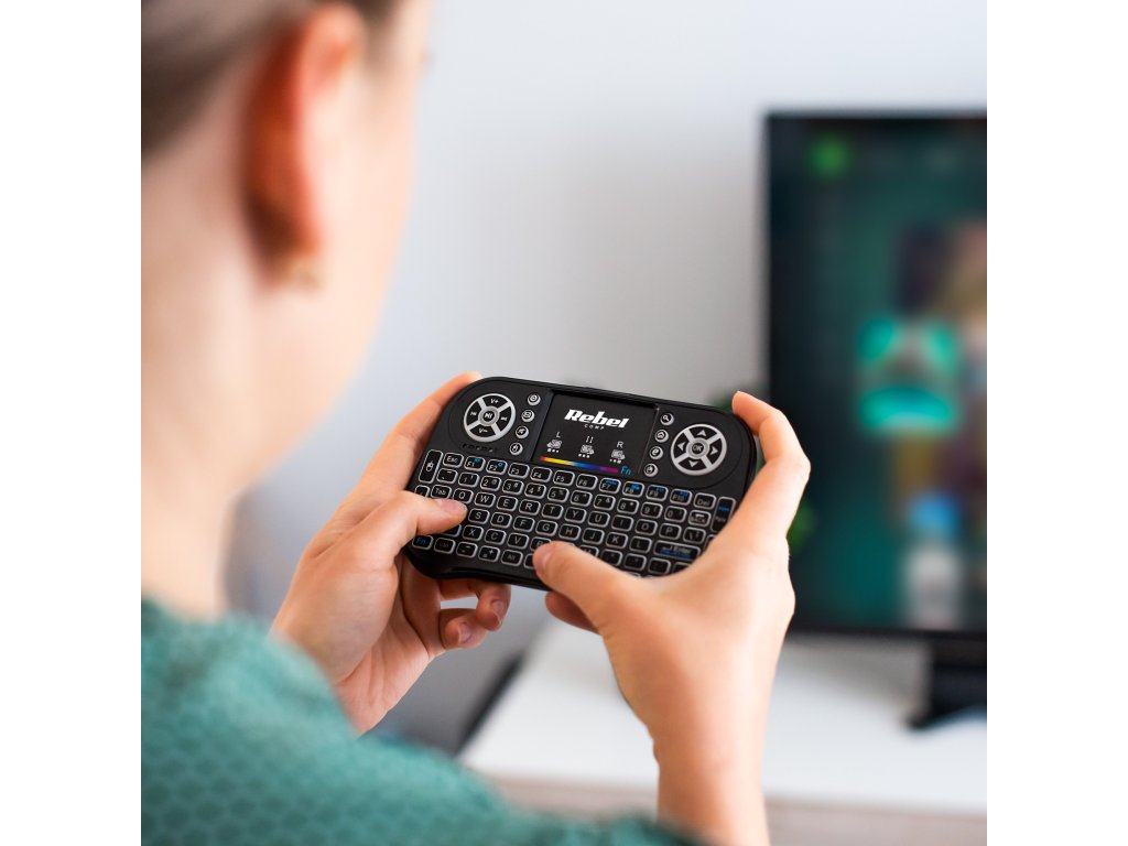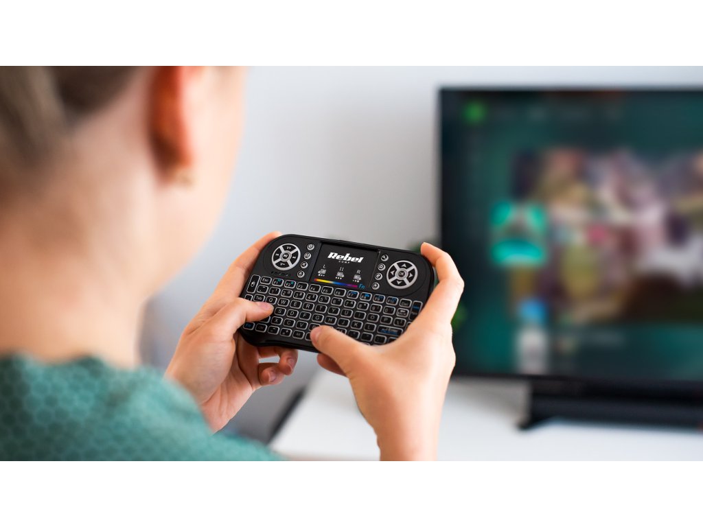 Rebel Mini Q5 este o tastatură wireless și mouse într-unul singur. Touchpad-ul integrat permite derularea intuitivă verticală și orizontală, astfel încât navigarea în meniuri este floare la ureche.