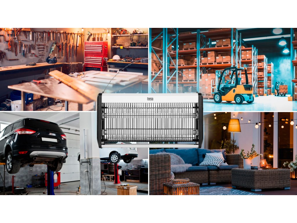 Te-ai săturat de muște, țânțari și alte insecte enervante Încercați lampa UV pentru insecte Teesa. Acest model este proiectat având în vedere eficiența maximă și este destinat camerelor de mari dimensiuni – până la 100 m2, de aceea este excelent pentru depozite, magazine și ateliere.