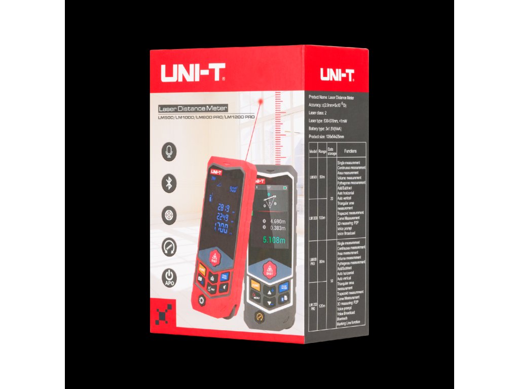 Telemetru Uni-T LM50D permite determinarea rapidă a distanței până la 50 m cu o precizie de +/-2 mm. Punctul laser clar facilitează focalizarea obiectelor în timpul măsurării, iar ecranul mare, ușor de citit, facilitează citirea rezultatelor și a calculelor curente.