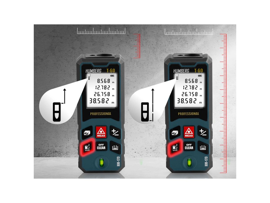Telemetru HUMBERG T-60 oferă două opțiuni de măsurare a distanței:
