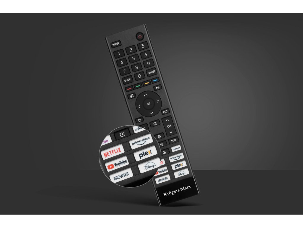Televizorul Kruger&Matz KM0255UHD-V2, datorită sistemului VIDAA, oferă acces la cel mai bun conținut muzical, cinematografic și sportiv, inclusiv platforme populare precum Netflix, YouTube, Disney Plus și Amazon Prime Video. Bucurați-vă de filmele și serialele dvs. preferate la calitate înaltă, oricând doriți.