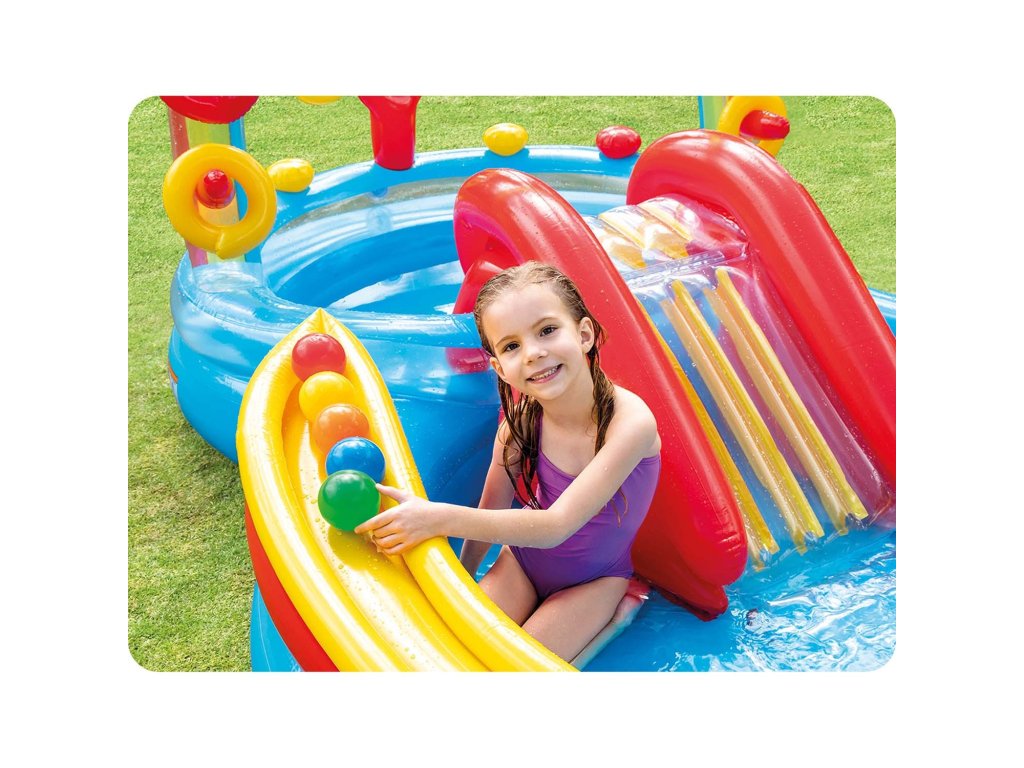 Terenul de joacă include o piscină, un tobogan, o fântână, un joc cu patru inele gonflabile și, dacă nu este suficient - un tobogan pentru bile cu șase bile.