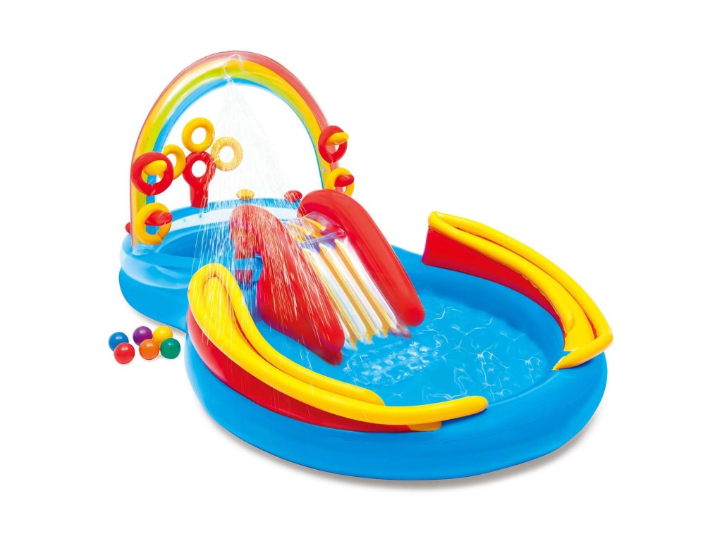 Terenul de joacă gonflabil Curcubeu Intex este o distracție care face ca copiii dumneavoastră să petreacă activ vacanța în aer liber.