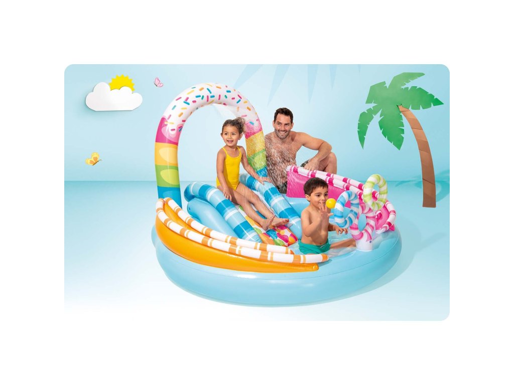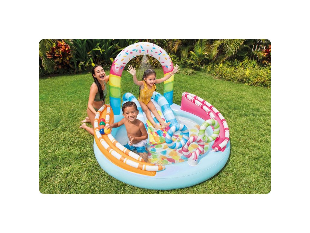Tărâmul gonflabil al dulciurilor este potrivit pentru copiii peste 2 ani, dar va încânta și copiii mai mari. Intex s-a asigurat că toți copiii pot să folosească în siguranță energia și să se bucure de distracția acvatică.