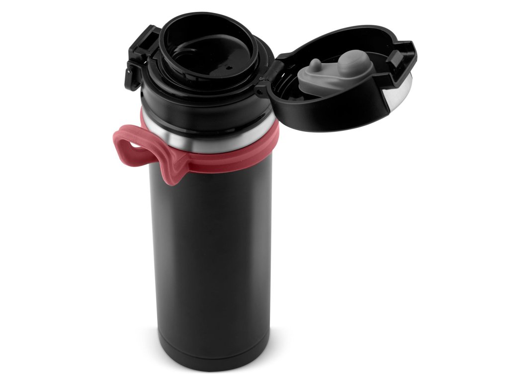 Mânerul facilitează transportul și permite atașarea termosului pe rucsac sau geantă.