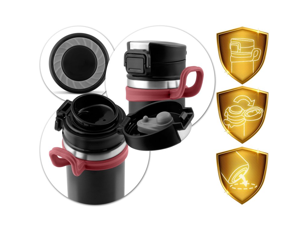 Încuietoarea capacului - datorită acestui element suplimentar, puteți fi sigur că termosul va fi bine închis și securizat. Are elemente etanșe care mențin perfect temperatura băuturilor depozitate.