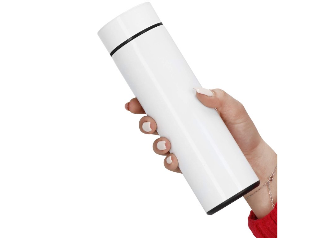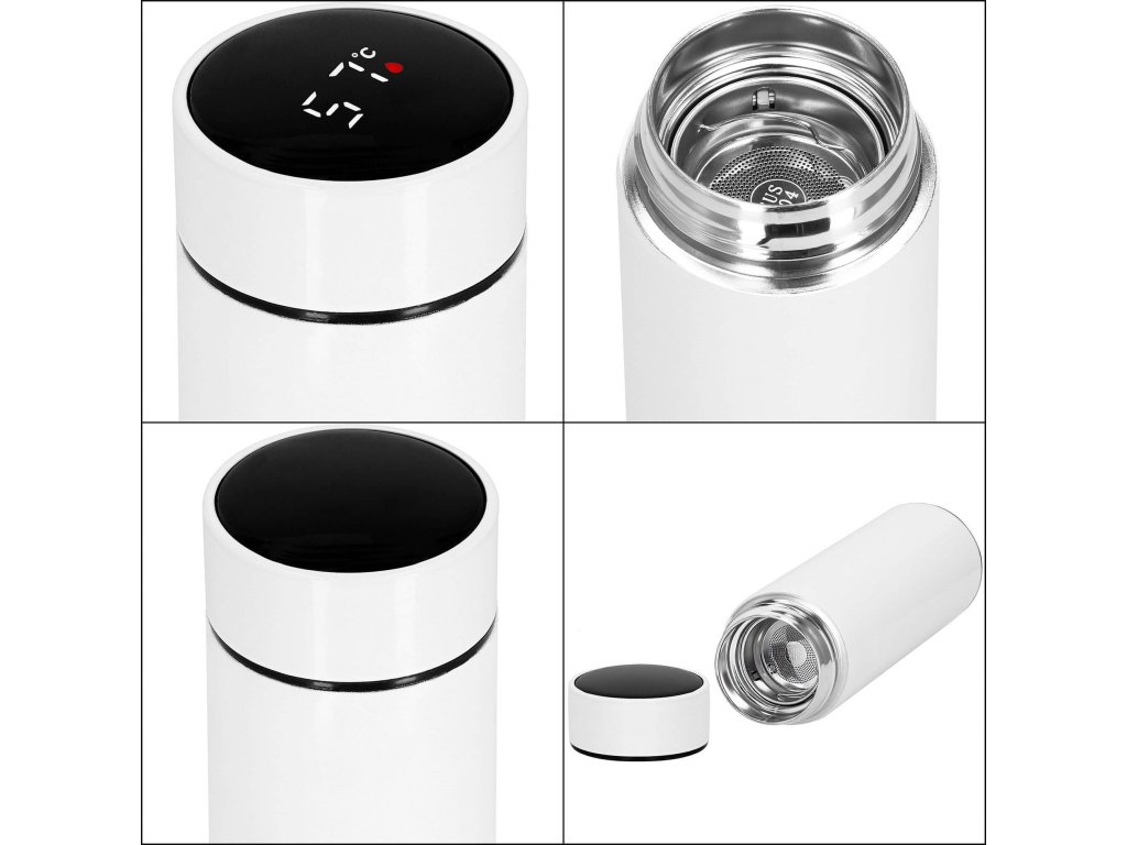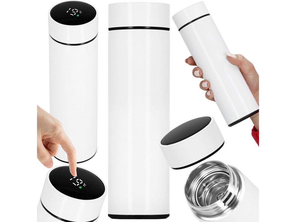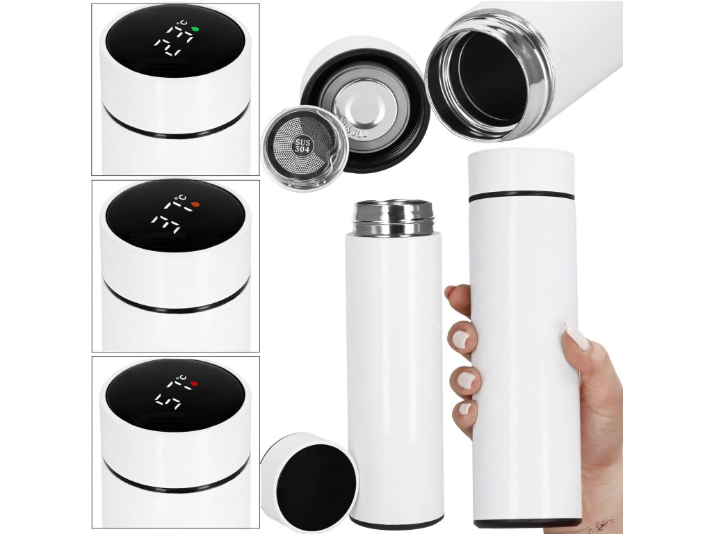 - Afișaj electronic al temperaturii pe partea de sus a capacului, în grade Celsius, culoarea picăturii de pe afișaj indică nivelul de temperatură al băuturii: verde, portocalie, roșie