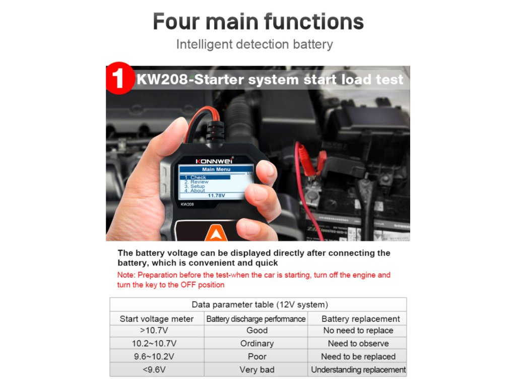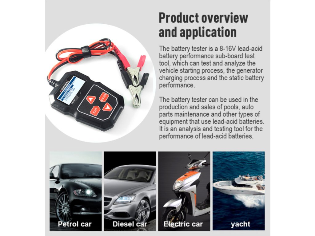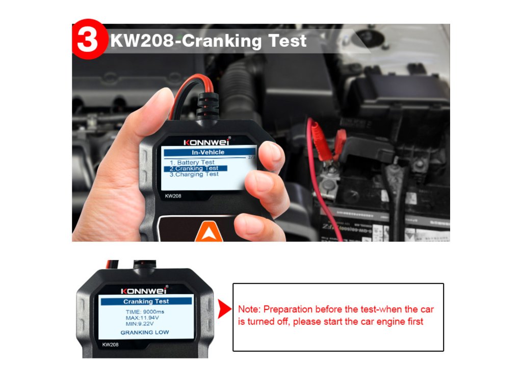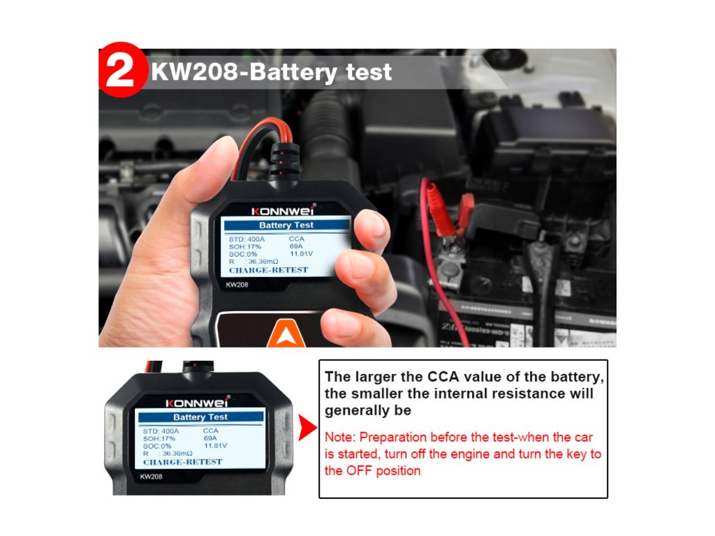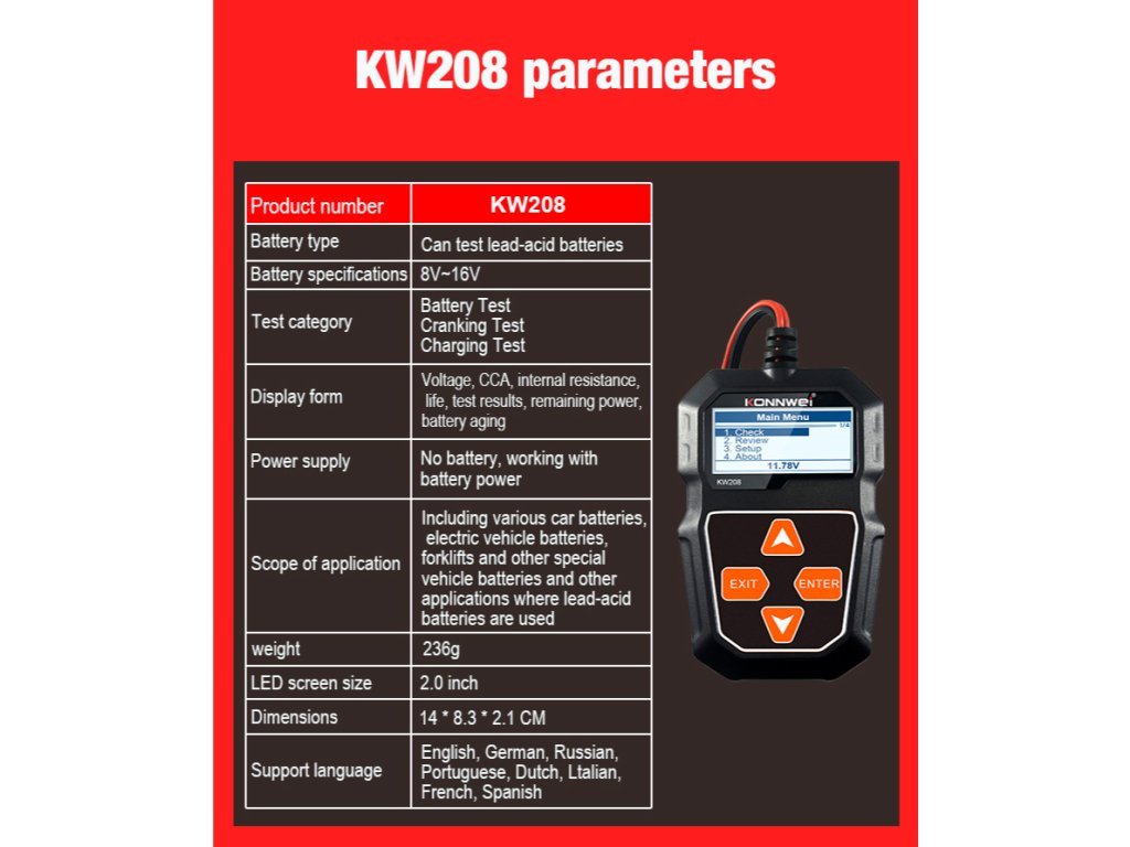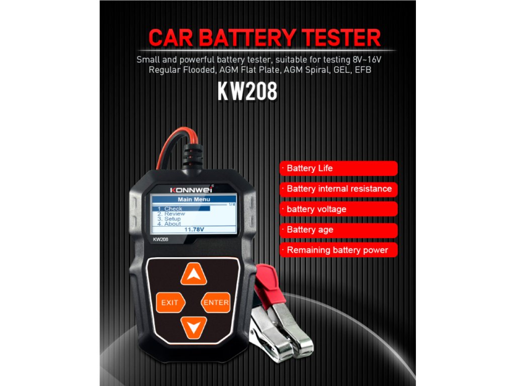 Tester baterie auto Konnwei KW208