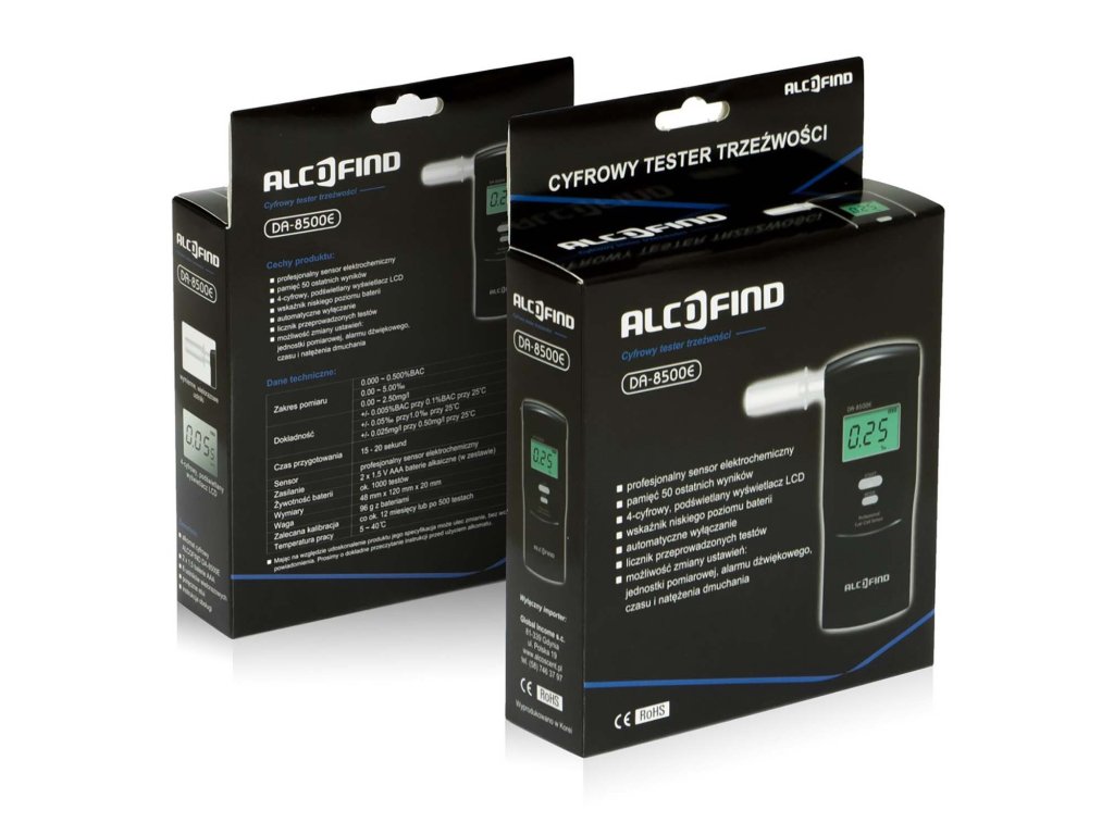 Analizorul de respirație DA 8500 E este un produs apreciat de profesioniștii care așteaptă cea mai înaltă calitate și care îndeplinește cerințe stricte. Noutate în Polonia - compania noastră este singurul distribuitor oficial al acestui model. Fiabilitatea măsurătorii, precizia, durabilitatea - aflați de ce analizatoarele de respirație personale AlcoFind sunt printre cele mai populare testere de alcool din respirație.