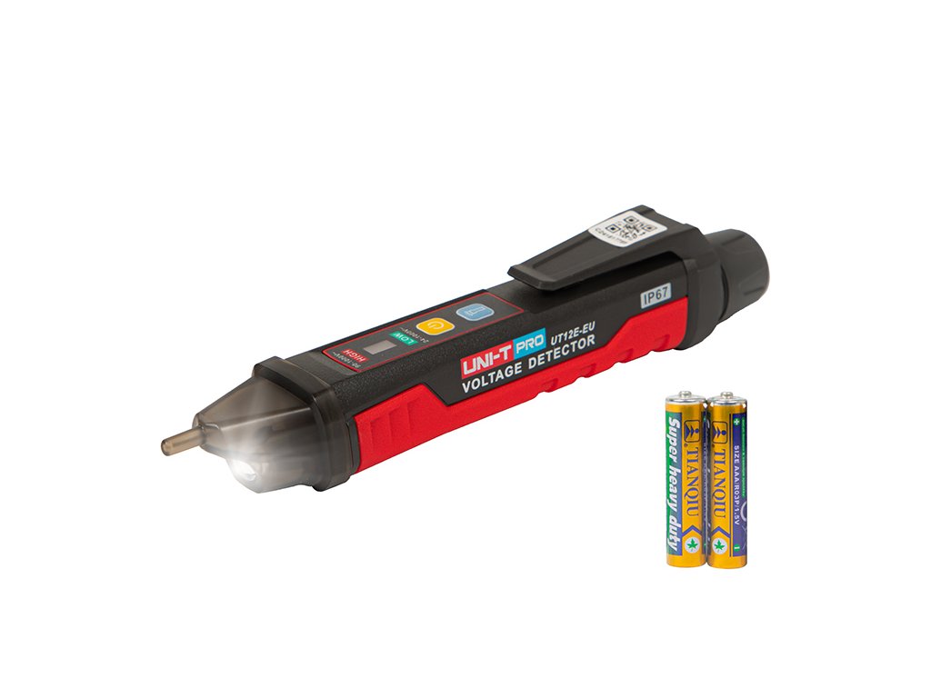 UT12E-EU este un detector de tensiune profesional UNI-T. Este proiectat cu o clasă de rezistență la praf/apă IP67 și rezistă la căderi de la o înălțime de 2 metri. Aceste dispozitive robuste sunt ideale pentru lucrul în condiții dificile. UT12E-EU are un mod de vibrație opțional.