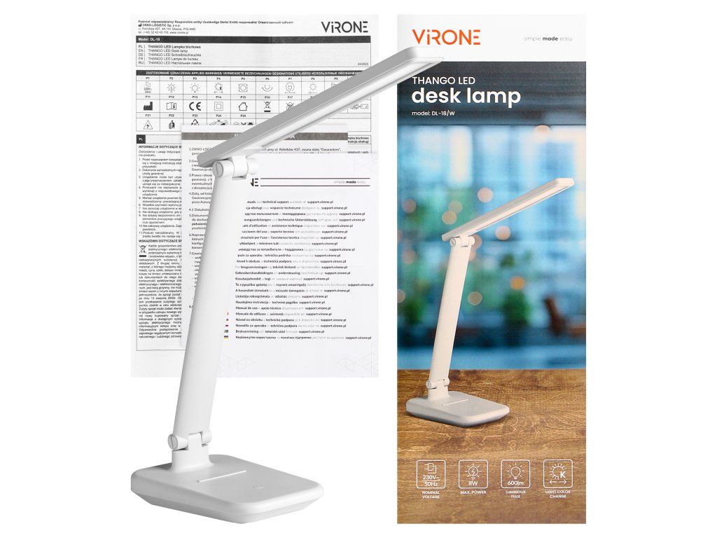Lampa de birou cu LED THANGO este un sistem de iluminat funcțional pentru utilizarea în interior, atât în birouri, cât și acasă, pentru zonele de studiu. Lampa este potrivită pentru funcționare la 230V. Echipată cu o sursă de lumină LED de 8W, economisitoare de energie și nereînlocuibilă, care generează un flux luminos de 600lm, asigură o iluminare confortabilă și uniformă a suprafeței de lucru. Utilizatorul poate ajusta culoarea luminii pentru a se potrivi nevoilor sale cu ajutorul a trei moduri - 3000K, 4000K și 6000K. O culoare caldă ajută la relaxare, o culoare neutră nu obosește ochii, iar o culoare rece favorizează studiul sau lucrul. În plus, controlul luminozității permite reglarea intensității luminii, făcând-o mai confortabilă de utilizat indiferent de ora din zi. Lampa THANGO LED este echipată cu un braț mobil cu două puncte de ajustare pentru a regla liber unghiul luminii. Lampa poate fi, de asemenea, ușor pliată dacă este necesar. Lampa este instalată pe o bază clasică. Carcasa este realizată din plastic alb. Lungimea cablului de alimentare: 1,2 m. Dimensiuni: 116x340x163 mm.Parametri suplimentari
