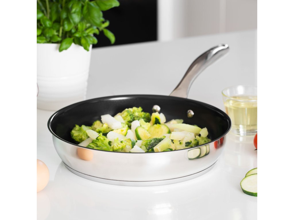 Această tigaie mică este realizată din oțel inoxidabil 18/10 de cea mai bună calitate, ceea ce înseamnă că compoziția sa conține 18% crom și 10% nichel. Acesta garantează proprietăți excelente anticorozive și durabilitate, rezistență la zgârieturi, deteriorare și căldură. Pe de altă parte, prezența nichelului contribuie la aspectul estetic al produsului, deoarece conferă tigăii o culoare mai deschisă și un luciu.