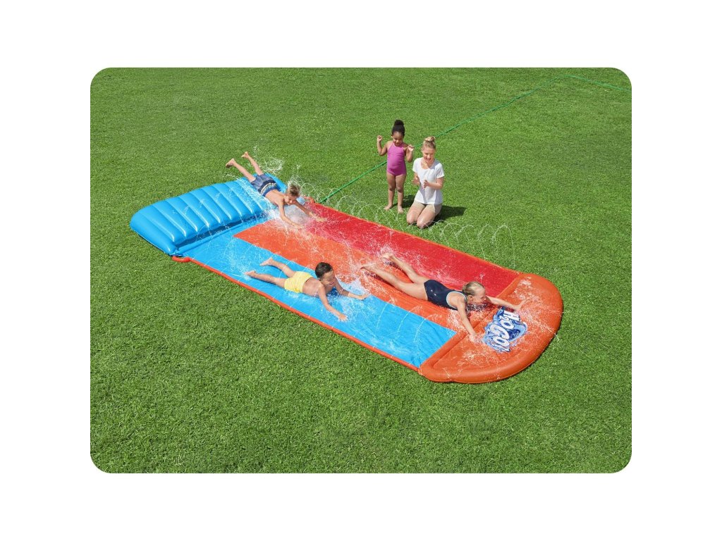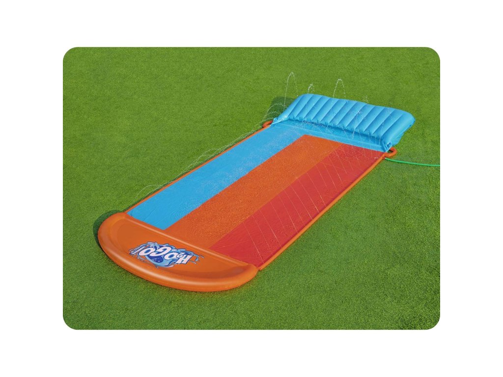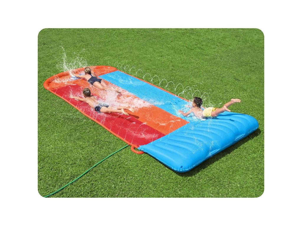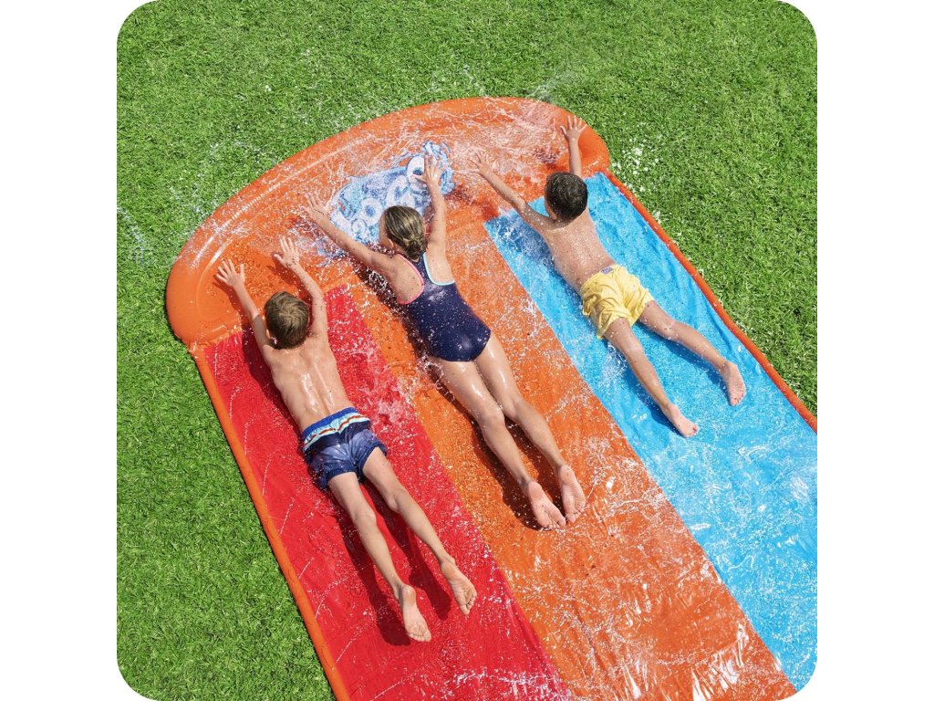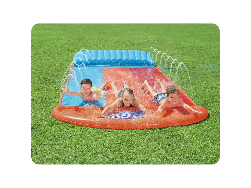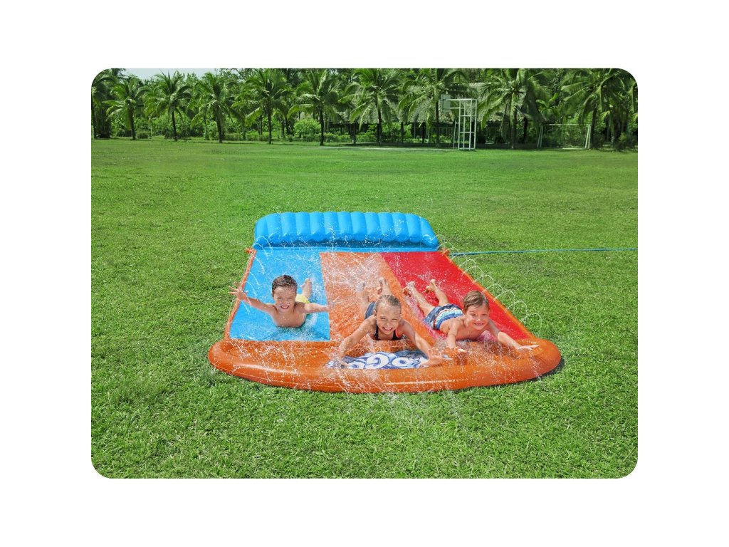 Toboganul are trei benzi și aspersoare de apă care asigură alunecarea corectă în timpul distracției.