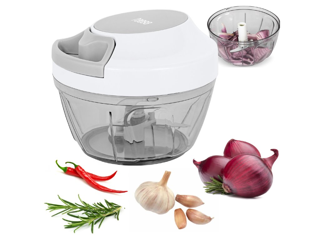 Ai nevoie de un aparat electrocasnic mic care să te ajute să pregătești rapid salata sau pasta de ou preferată Sau te pregătești să campezi și ai nevoie de un tăietor de ceapă Alege mini tocătorul de legume manual Teesa 400 ml, care, cu ajutorul celor trei cuțite plasate diferit, va tăia ușor ceapa, morcovul, nucile sau ierburile.