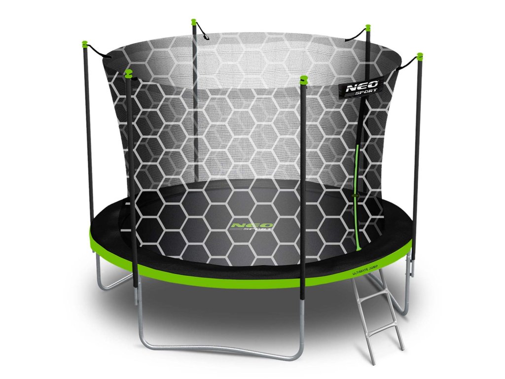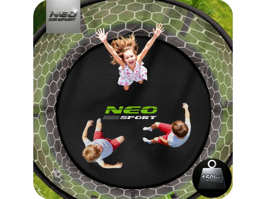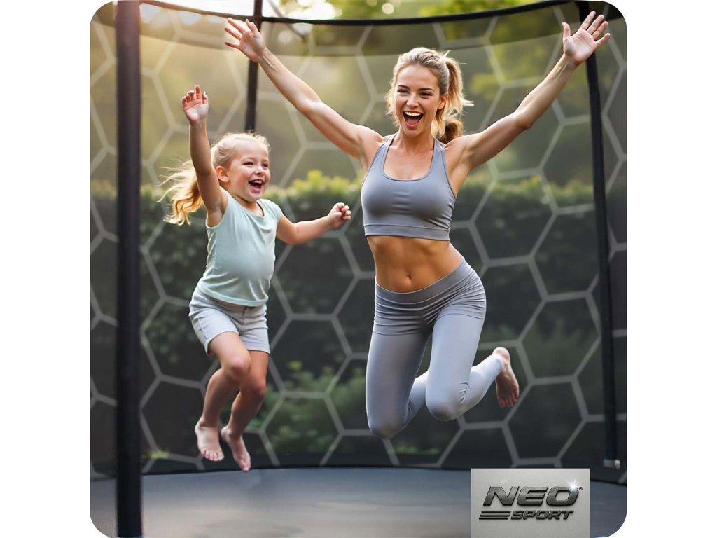 - setul include: trambulină de grădină, plasă de siguranță, scară metalică, manual de instrucțiuni
