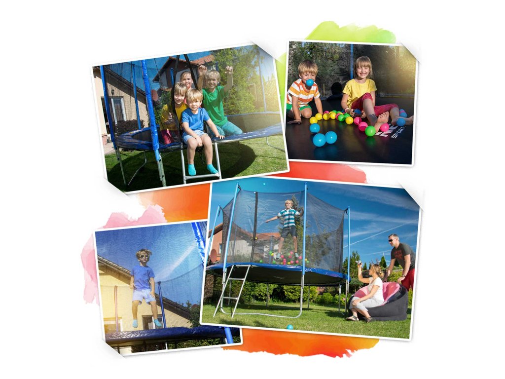 - setul include: trambulină de grădină, plasă de siguranță, scară metalică, manual de utilizare