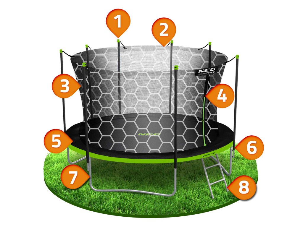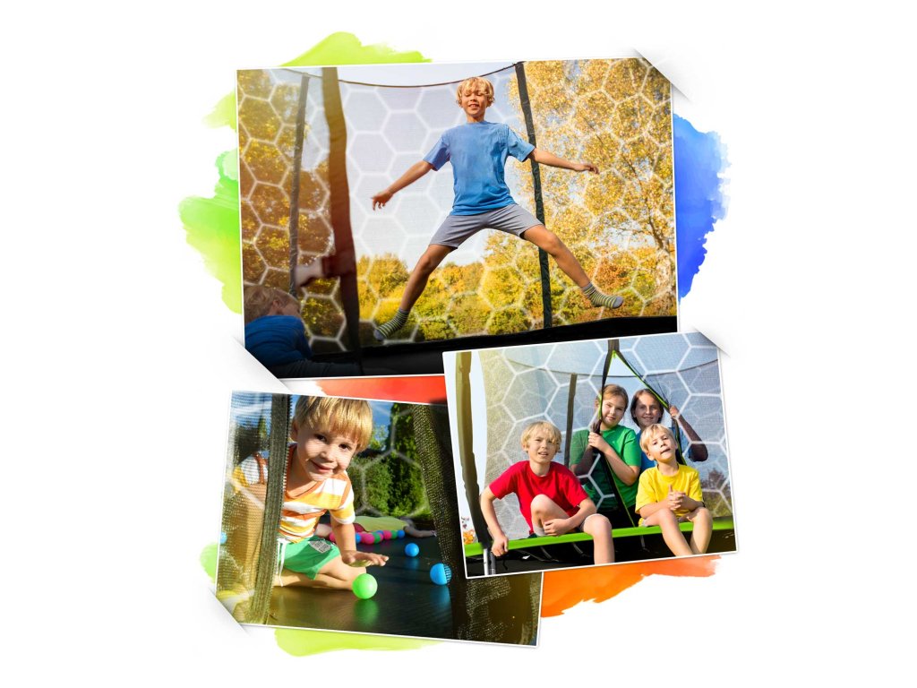 - setul include: trambulină de grădină, plasă de protecție, scară metalică, instrucțiuni de utilizare
