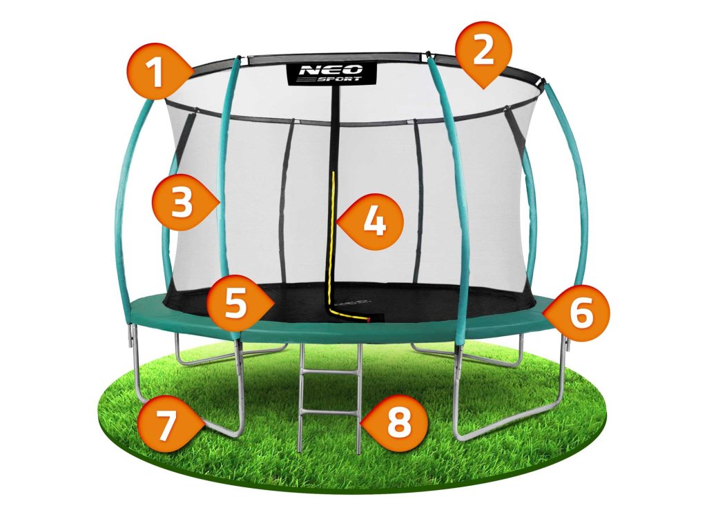 - setul include: trambulina de grădină, plasă de protecție, scară metalică, manual de instrucțiuni