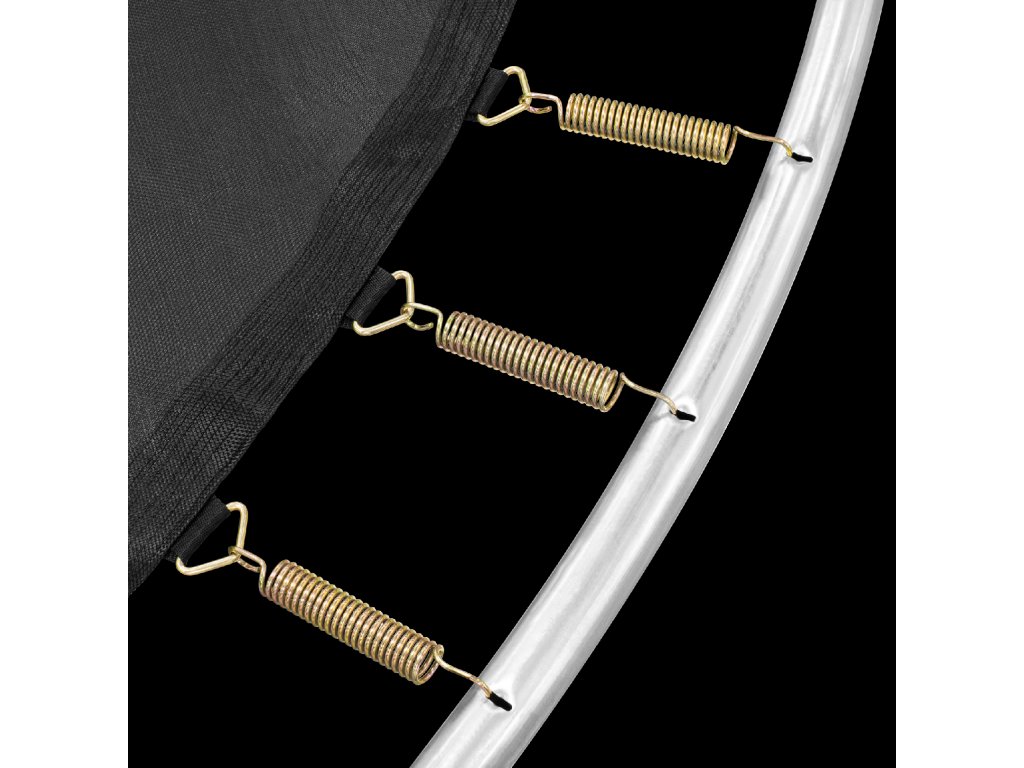 Secretul distracției pe trambulină constă în arcuri. De aceea, trambulina pentru copii Rebel are până la 54 de arcuri, ceea ce garantează o dinamică corectă a săriturii. Arcurile sunt, de asemenea, galvanizate, ceea ce le prelungește semnificativ viața. Pentru siguranță suplimentară, arcurile sunt ascunse sub o acoperire specială verde.