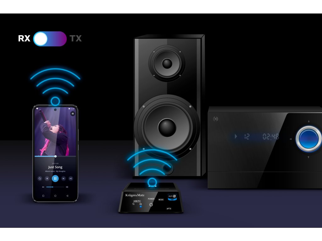 Credeți că conexiunea wireless înseamnă o calitate mai slabă a sunetului Nicidecum! Datorită suportului pentru codec-ul apt-X, transmițătorul Kruger&Matz oferă un sunet excelent. Dispozitivul este, de asemenea, echipat cu tehnologia Bluetooth 5.0, care garantează nu doar o rază mai mare și stabilitate a conexiunii, ci și un consum redus de energie.