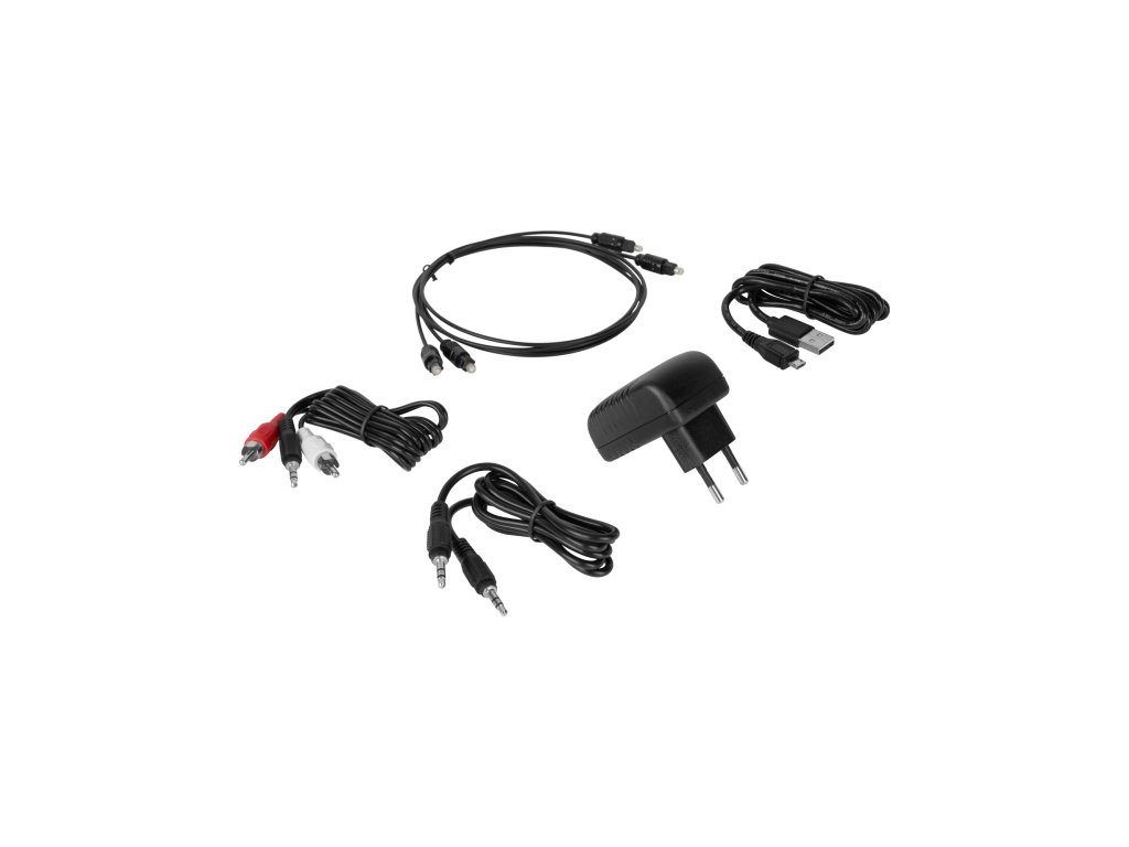 Include: Sursă de alimentare, cablu USBmicro USB, cablu jackjack, cablu jack2x RCA, 2x cablu optic