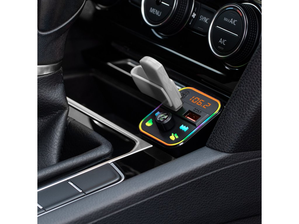 Transmițătorul Bluetooth FM poate fi folosit și ca un set hands-free. Microfonul încorporat îți oferă libertatea de a vorbi în timp ce conduci.