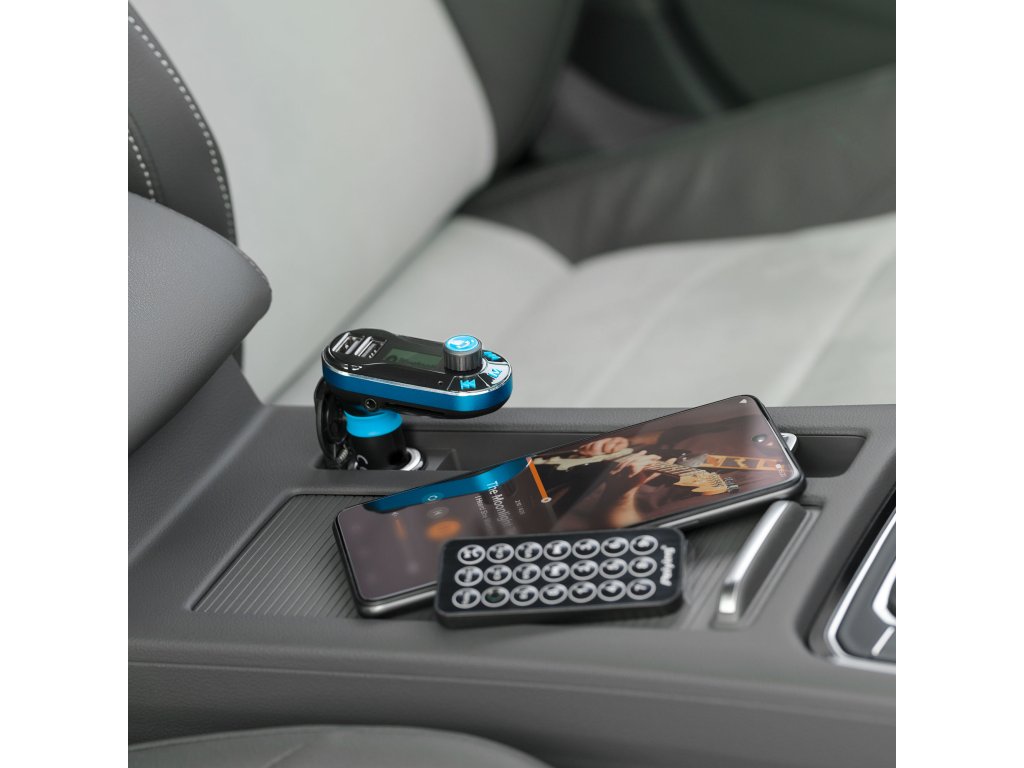 Credeți că selecția largă de surse audio este singurul avantaj al transmițătorului FM Nimic nu ar putea fi mai departe de adevăr! Dispozitivul este echipat cu un microfon încorporat, așa că poate fi folosit ca set handsfree. Are, de asemenea, două porturi USB, ceea ce înseamnă că puteți încărca smartphone-ul sau dispozitivul de navigație în timp ce ascultați muzică de pe un stick USB. Datorită ecranului LCD de 1,4" și a telecomenzii, controlul transmițătorului este extrem de convenabil.