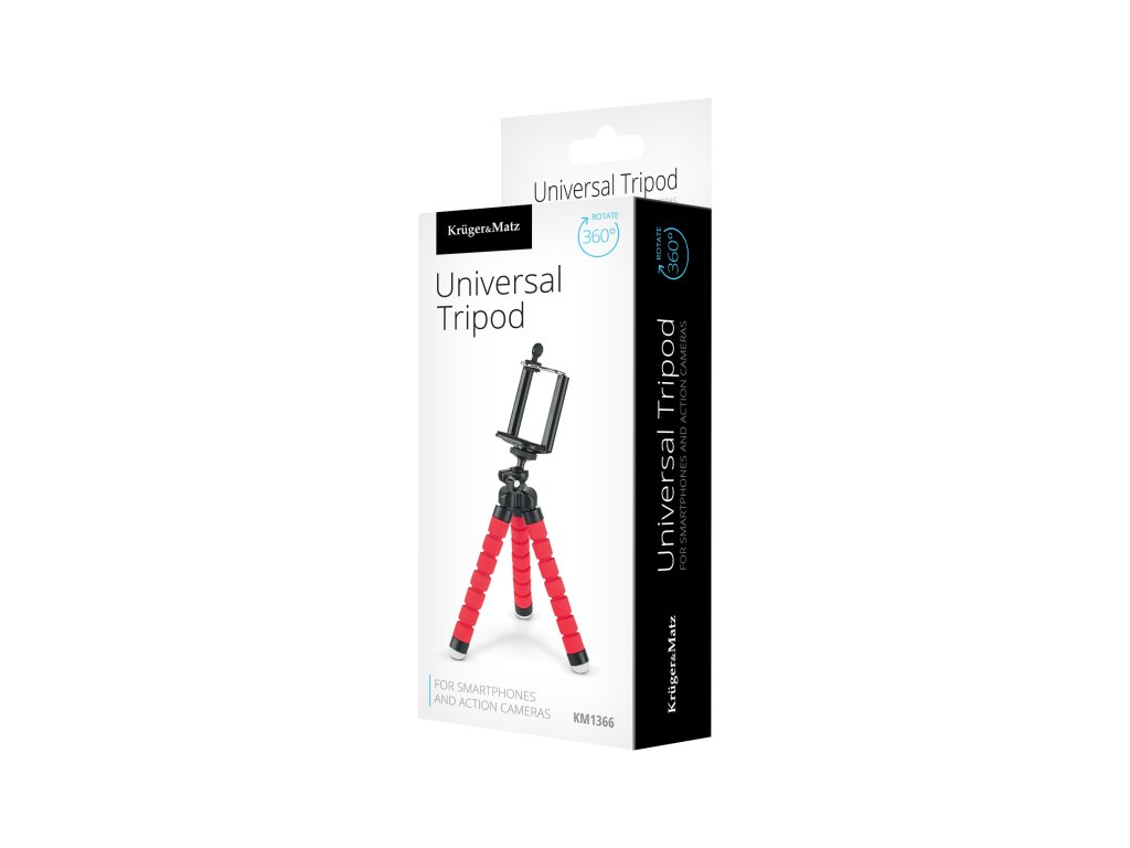 Trepiedul Kruger&Matz este un dispozitiv care va fi util nu doar pentru fiecare proprietar de cameră sportivă, ci și pentru proprietarii de smartphone-uri. Picioarele sale acoperite cu spumă și tălpile din cauciuc oferă o stabilitate extraordinară. Merită menționat că picioarele trepiedului sunt flexibile, astfel oferă o mulțime de posibilități de ajustare la orice înălțime și poziție.