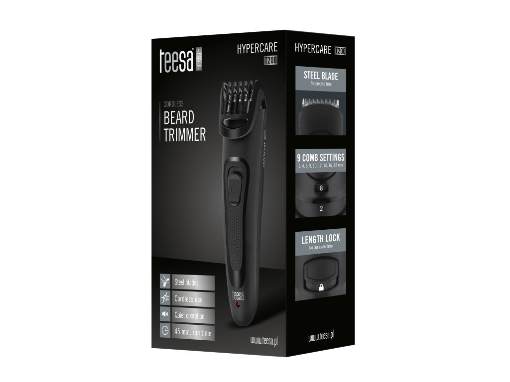 Teesa HYPERCARE T200 este un aparat de tuns de înaltă calitate, care vă permite să păstrați cu ușurință aspectul perfect al bărbii dumneavoastră. Cu acest dispozitiv, vă creați propriul stil unic, care vă va face să vă simțiți întotdeauna grozav!