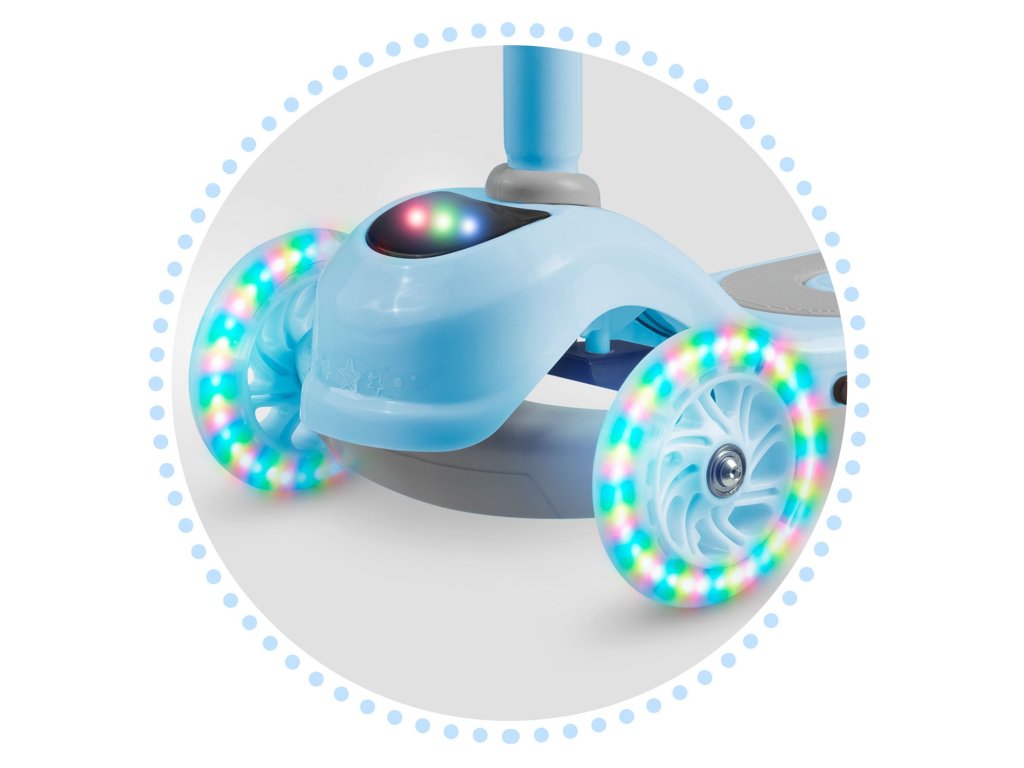 - distracție grozavă! Trotineta are un dinam integrat, astfel încât roțile se aprind în timpul mersului!