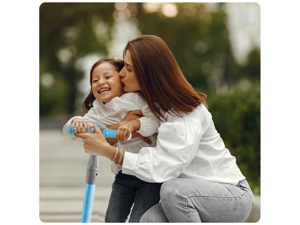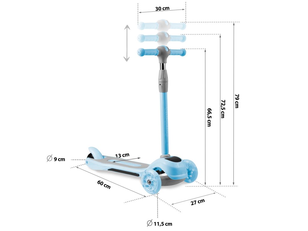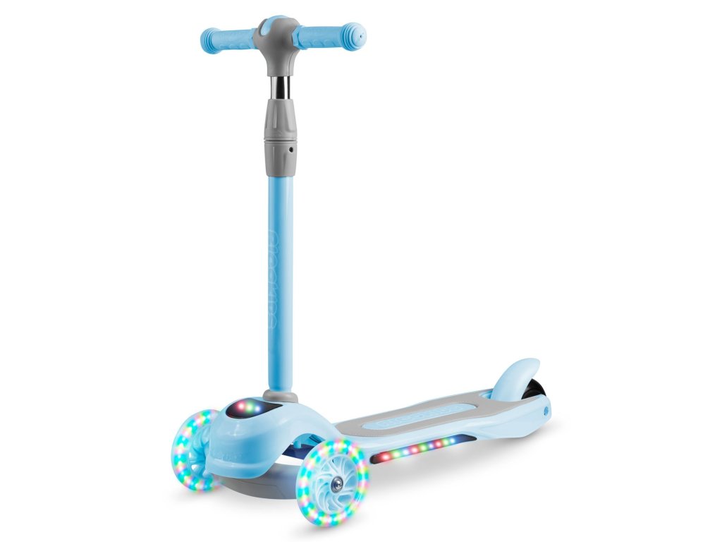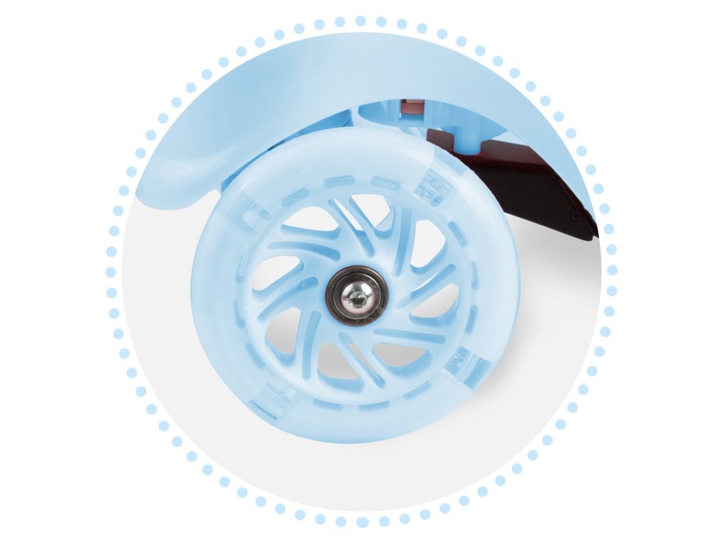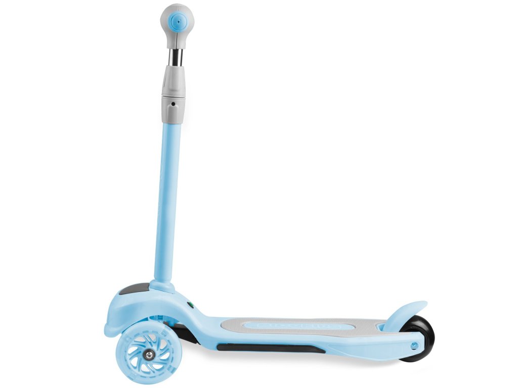 Acest scuter permite controlul prin echilibrarea corpului fără a răsuci ghidonul. Este suficient să vă înclinați în direcția dorită - și e gata. Copilul dumneavoastră va stăpâni rapid această tehnică de conducere și în același timp își va exersa simțul echilibrului. Este de asemenea un dispozitiv mai sigur pentru copiii mai mici - trotineta însăși rămâne stabilă datorită celor trei roți.