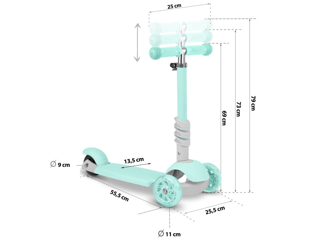 datorită reglajului pe înălțime,Trotinetă cu trei roți potrivită pentru distracția tuturor copiilor.