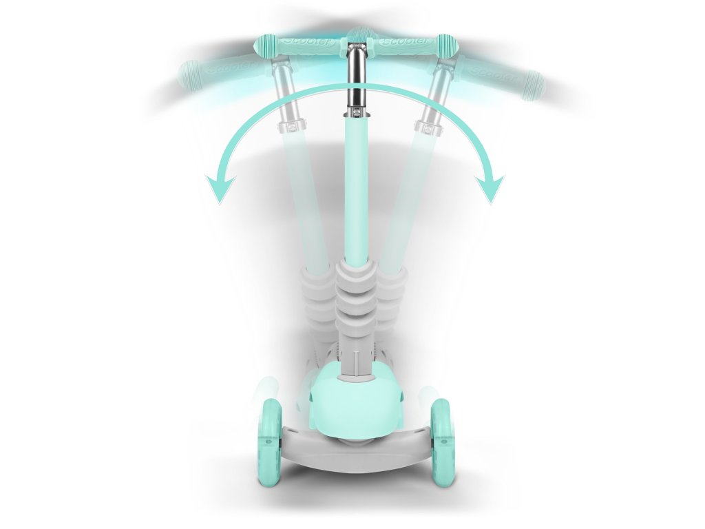 fără a roti ghidonul.Doar aplecați-vă ușor în direcția dorită – și gata! Copilul își însușește rapid această tehnică de conducere și în același timp își antrenează simțul echilibrului. Trotinetă cu trei roți rămâne stabilă în poziție verticală datorită celor trei roți.Numeroase teste și feedback de la clienții noștri satisfăcuți și mici