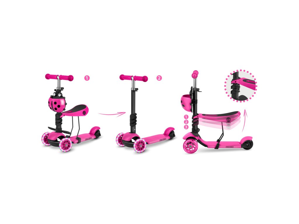 - 3in1 + setare pe trei niveluri a scaunului!Trotinetă cu trei roți