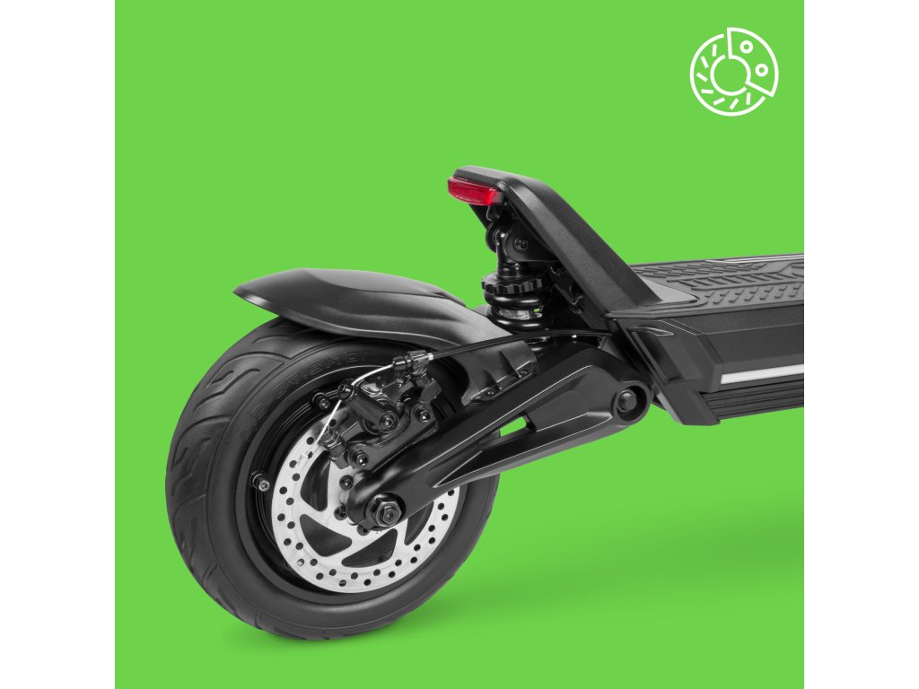 Frâna cu disc manuală de pe trotineta Rebel garantează o controlare rapidă și eficientă a vitezei fără a fi necesar să îți iei piciorul de pe platformă. Un alt avantaj al acestui tip de frâne comparativ cu frâna tradițională de picior este uzura mai redusă a roților.