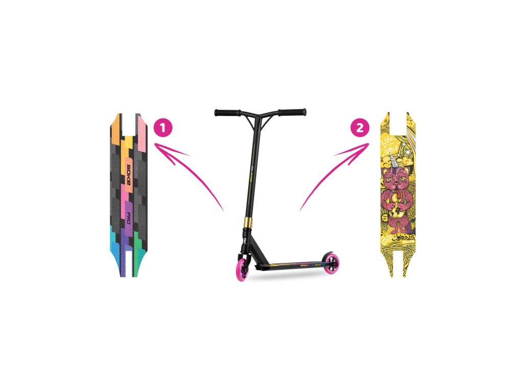 - Bandă suplimentară de grip, pe care o puteți lipi pe placa trotinetei și îi puteți schimba aspectul!