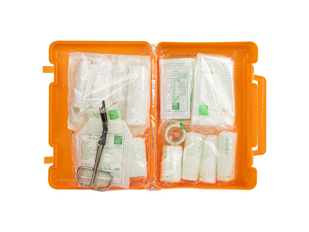 Cutie de prim-ajutor auto destinată pentru mașini personale și de marfă. Conținutul trusei de prim ajutor îndeplinește norma DIN13164Caracteristici
