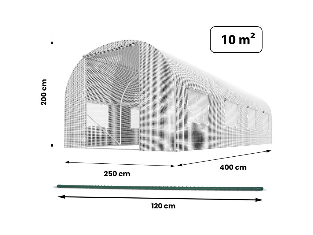 Tunel de grădină 2,5 x 4 m (10 m2) alb Plonos