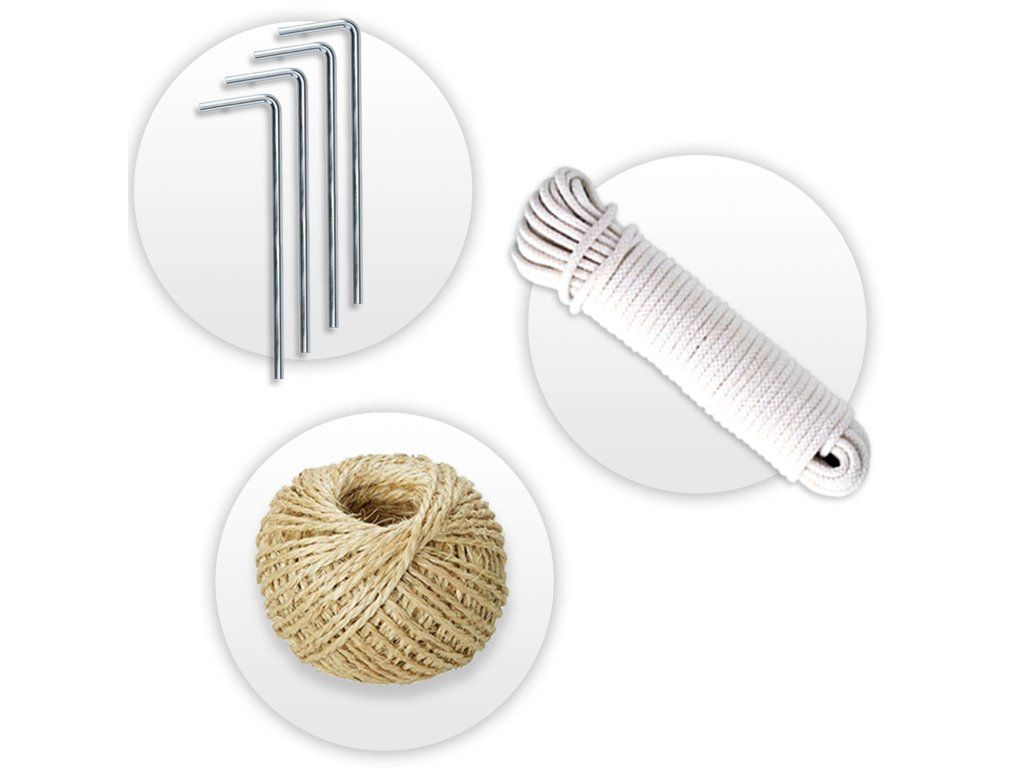 GRATIS primiți: 5 tije pentru susținerea plantelor, sfoară de sisal 100 m, 4 țăruși, 4x260 cm sfoară albă pentru tensionare.