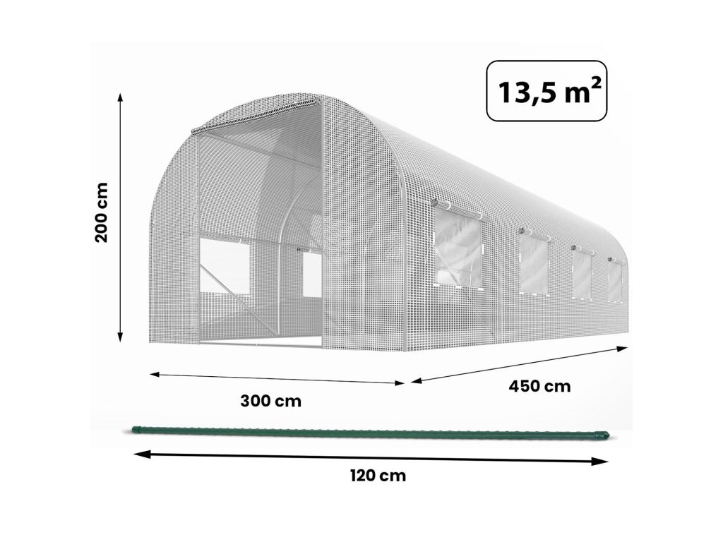 Tunel de grădină 3 x 4,5 m (13,5m2) alb Plonos