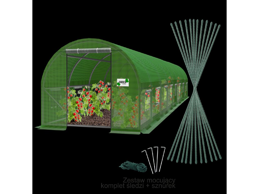 - Folii: Folii din polietilenă verde cu plasă PP sudată (întărește construcția și protejează împotriva rupturii)