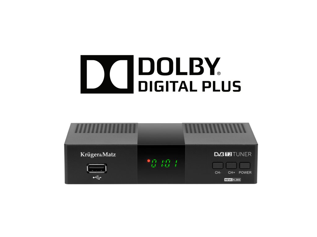 Tunerul Kruger&Matz redă sunetul conform standardului de codare E-AC-3. Astfel, te poți simți acasă ca la cinema. Calitatea Dolby Digital Plus oferă o calitate excepțională, sunet surround al filmelor și programelor tale preferate.