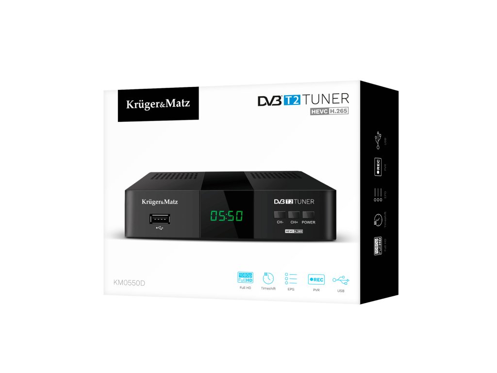 Decodorul tău vechi de televiziune terestră refuză să asculte și te gândești ce tuner DVB-T să cumperi Alege modelul KM0550 de la Kruger&Matz cu procesorul Ali 3822P, care permite recepția canalelor digitale în standard DVB-T și DVB-T2. În plus, tunerul dvb t Kruger&Matz suportă multe formate, de ex. H.265 HEVC, garantând astfel funcționarea corectă după introducerea schimbărilor în standardul de codare.