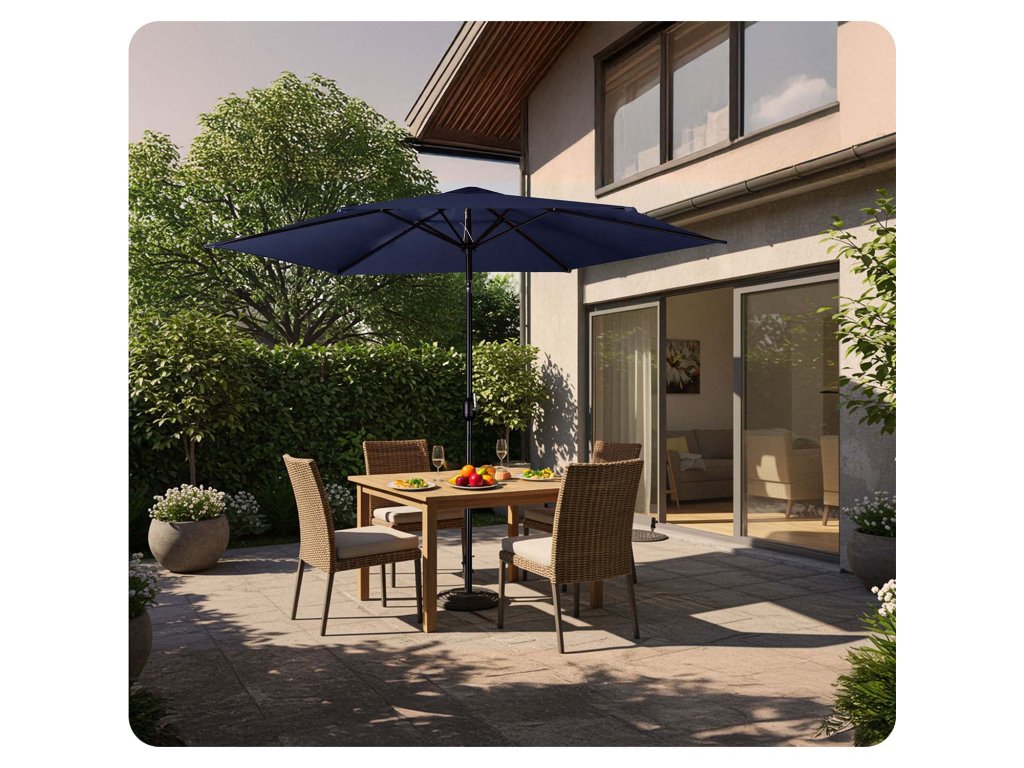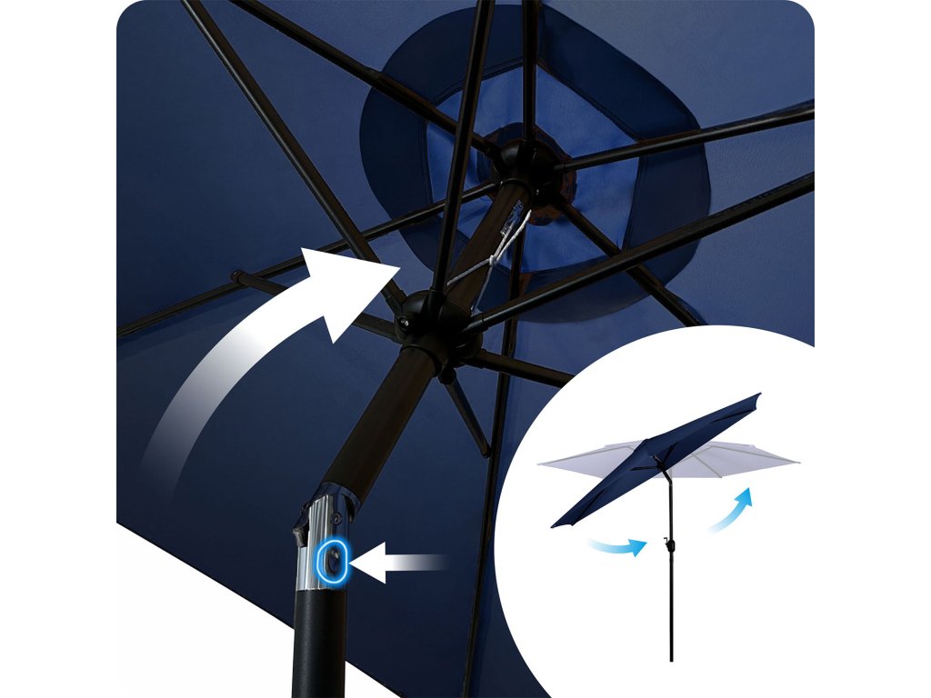 - Posibilitatea de reglare liberă a unghiului de înclinare al umbrelei.