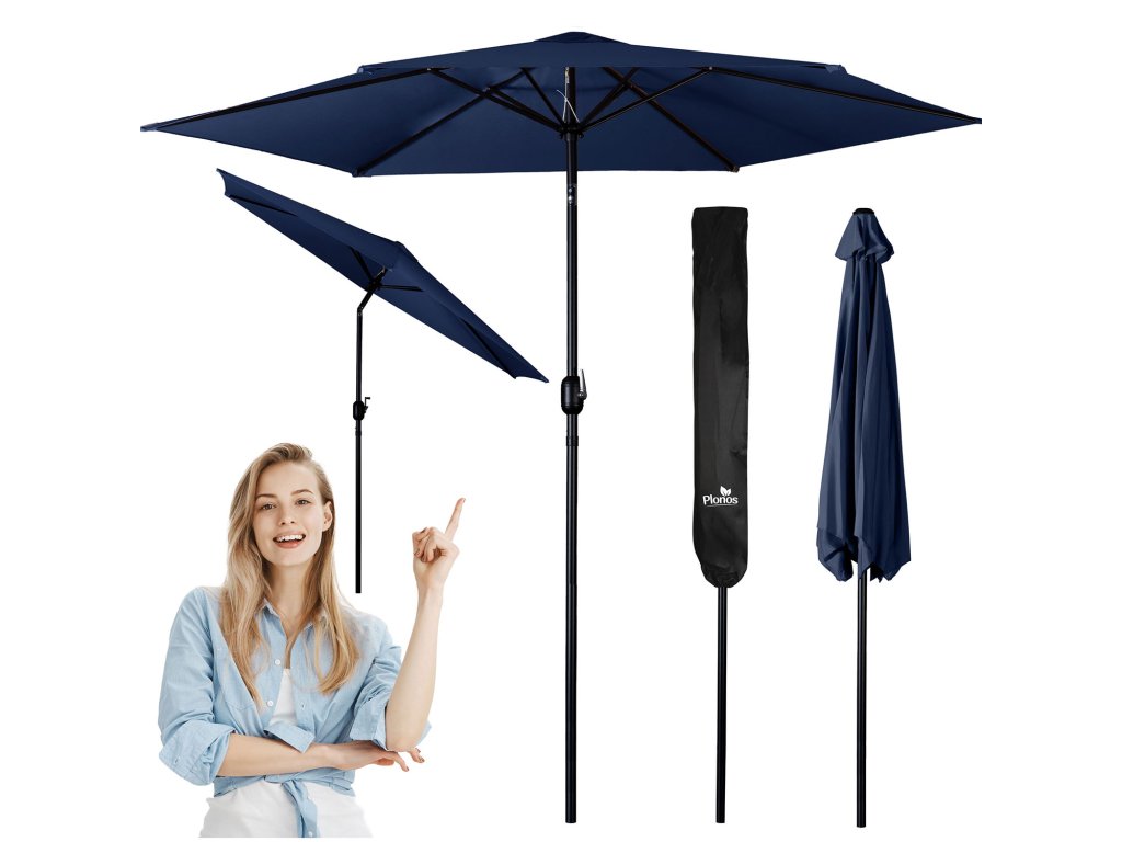 Umbrelă de grădină pliabilă cu 6 segmente 300 cm cu husă Plonos PL-884