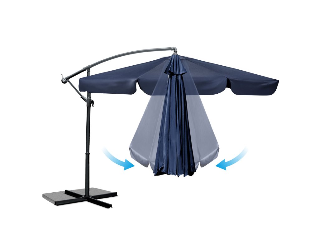 Husă din material rezistent Oxford protejează excelent umbrela împotriva efectelor nocive ale radiațiilor UV și altor influențe atmosferice, împiedicând decolorarea materialului și prelungind durata sa de viață.